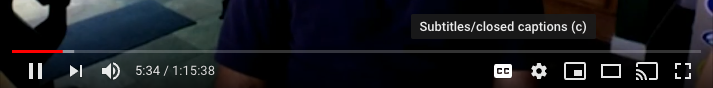 Unfortunately, at this time we do not support closed captioning for our livestreams, but for most of our on-demand content we embed YouTube which offers a closed caption feature that automatically generates captions. It's not perfect, but you can activate this by hovering over the video and click on the "CC" icon as shown below: